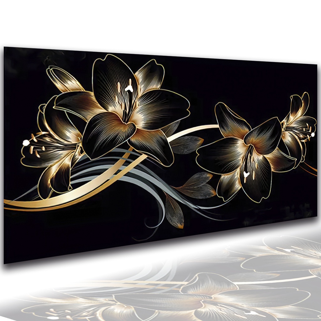 Quadro Decorativo Grande Flor Lírio Preto e Dourado Flores Gold Sala Quarto