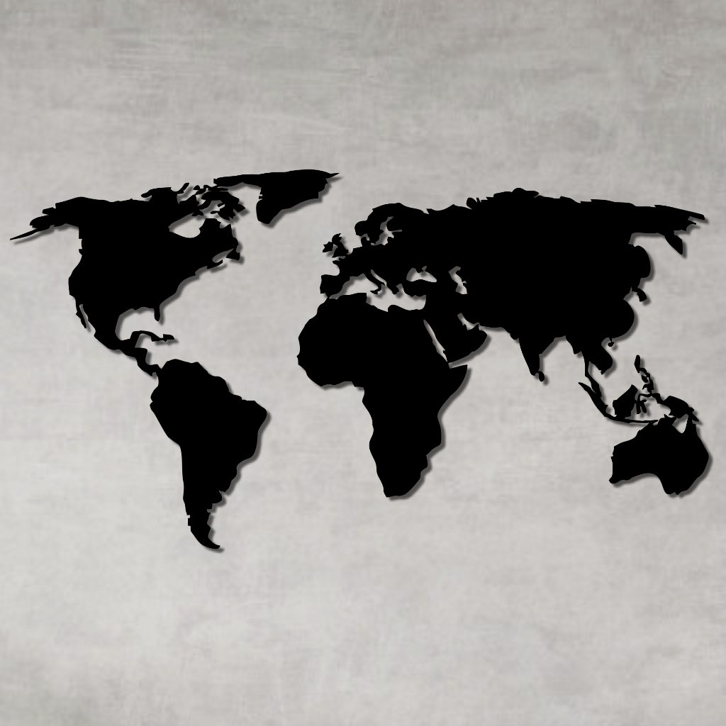 Quadro Decorativo Mapa Mundi Preto Sala Quarto Escritorio MDF 3mm