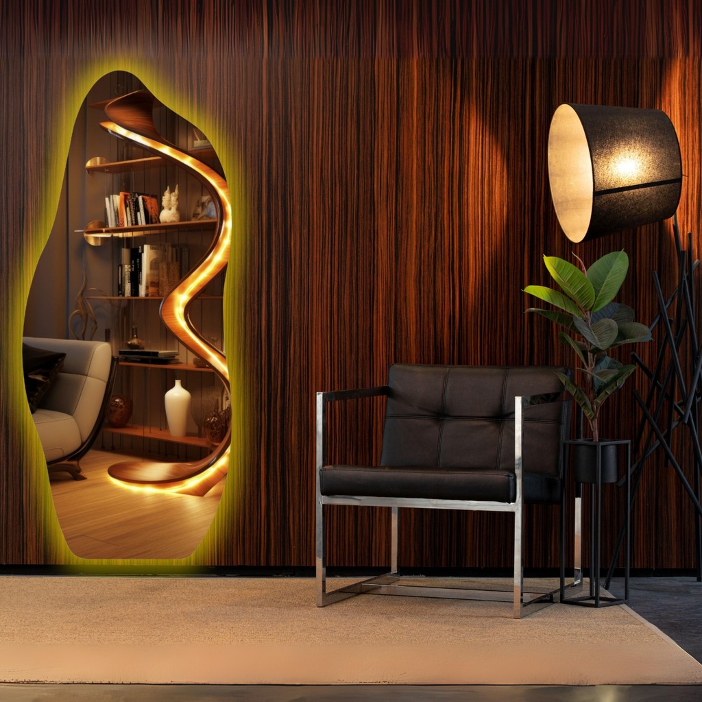 Espelho Orgânico Grande Corpo Inteiro Led Frio Quente 115cm x 60cm Decorativo Quarto Sala Banheiro