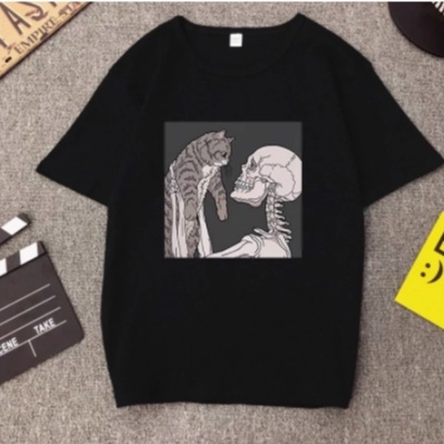 Camiseta Basica Camisa Moda Punk Caveira Gato Gatinho Gotico Girl Vintage Blusao
