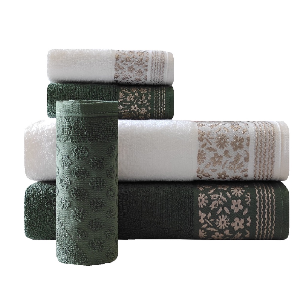 Kit c/ 5 Peças - 2 Banho 2 Rosto 1 Piso - Kenya - 100% Algodão Exceto Faixa Decorativa
