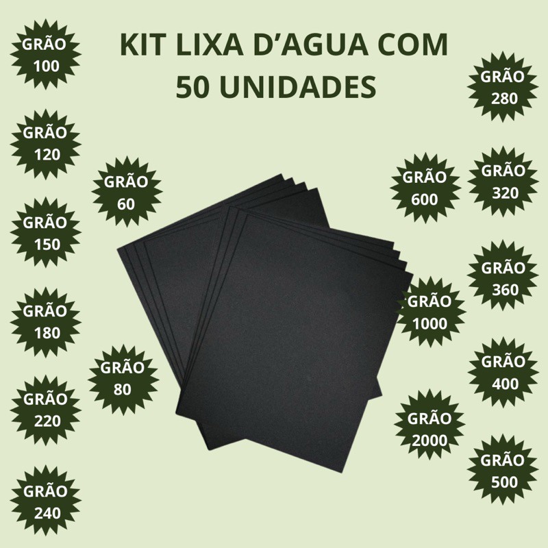 Kit Lixa D’Água Com 50 unidades Grãos 60 80 100 120 150 180 220 240 280 320 360 400 500 600 1000 2000
