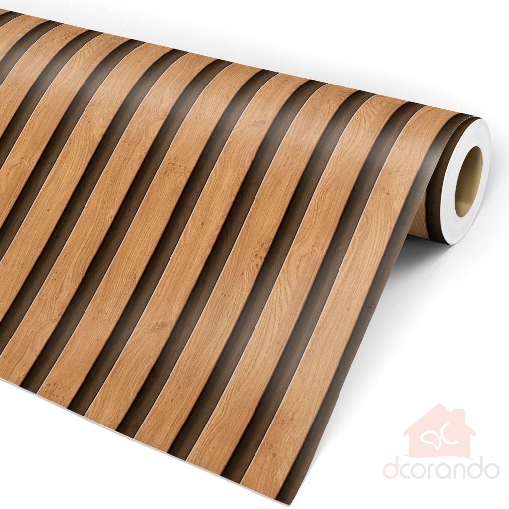 Papel De Parede Ripas Carvalho Claro Rolo Autocolante Lavável 3 Metros
