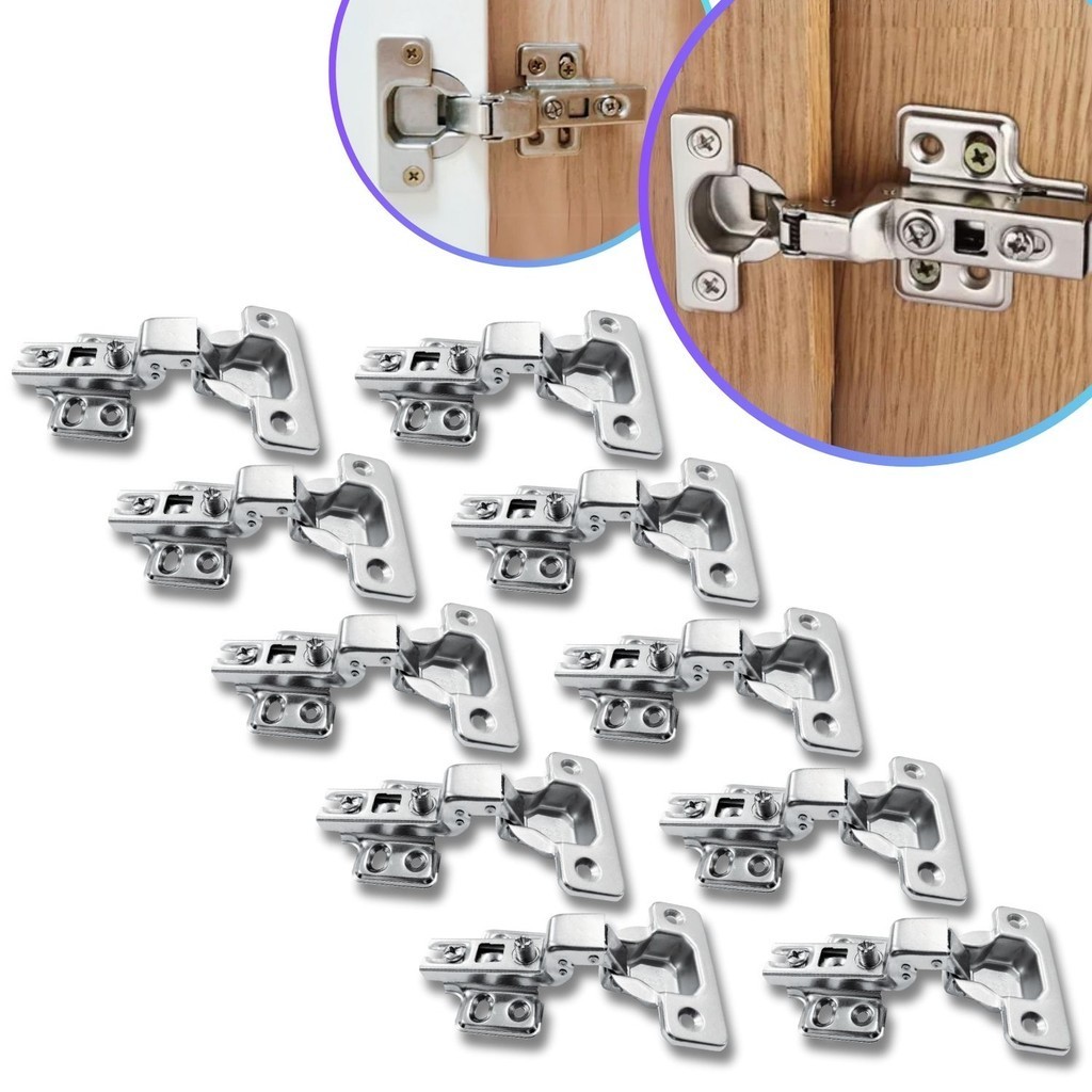 Kit 10 Dobradiças Com Amortecedor 35mm Curva/Reta Para Armários 26mm s/ Amortecedor P/ Móveis