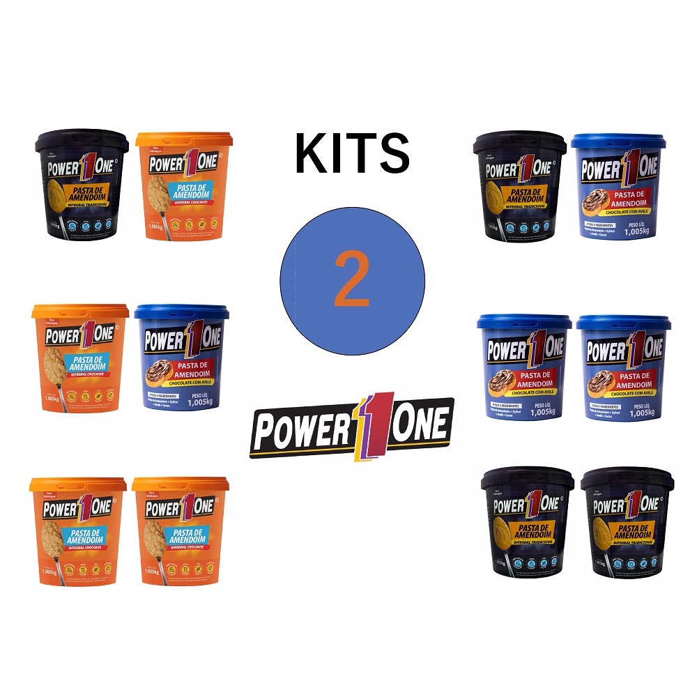 KIT Pasta de Amendoim Integral POWER ONE CROCANTE, TRADICIONAL ou CHOCOLATE C AVELÃ 1KG