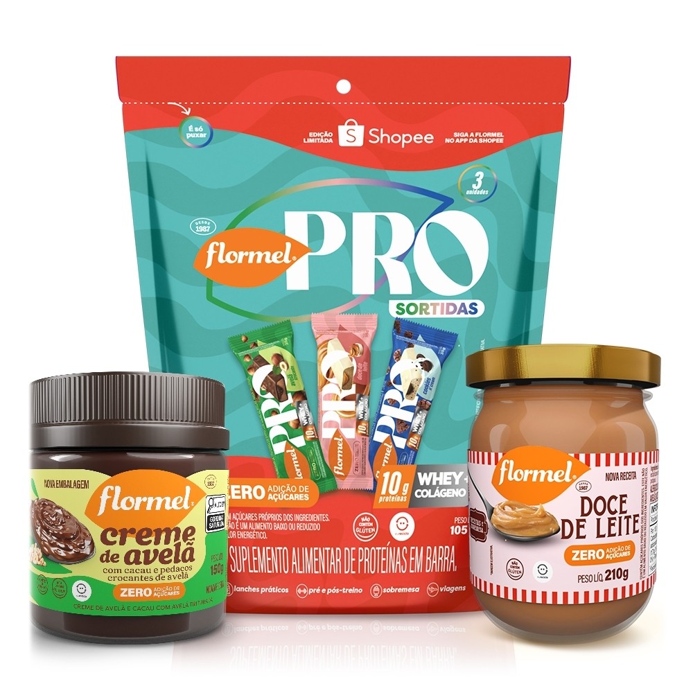 Kit Pouch Barras De Proteina Sortidas Shopee + Doce De Leite Cremoso Zero + Creme De Avelã Crocante Flormel