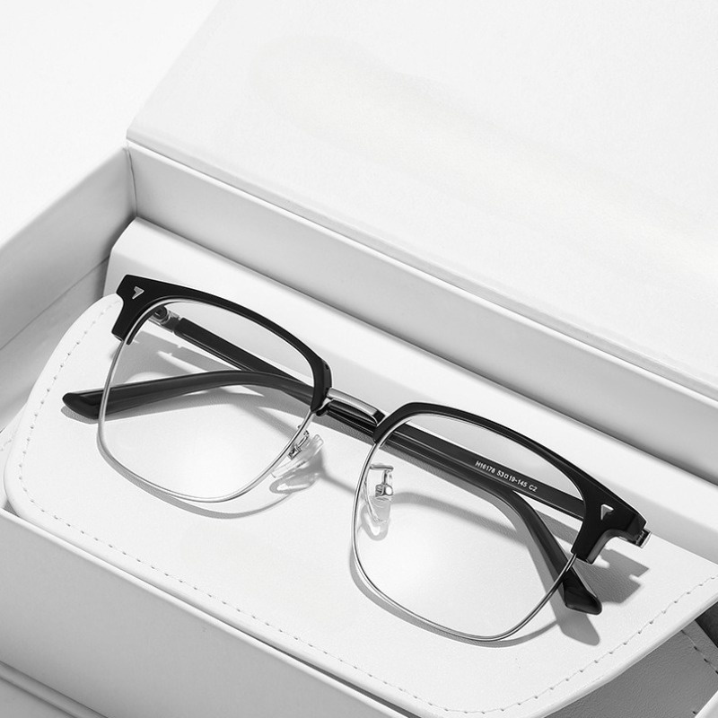 Armação De Óculos De Alta Qualidade Masculina Metal Quadrado Anti Luz Azul Lente Transparente Ópticos