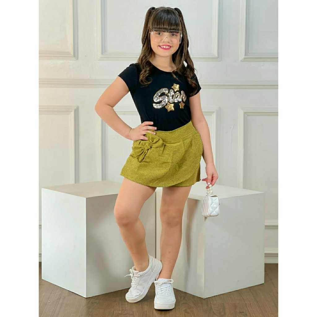 Conjunto infantil short saia e blusa baby loock feminina da moda infantil menina tamanhos 4 a 10 anos