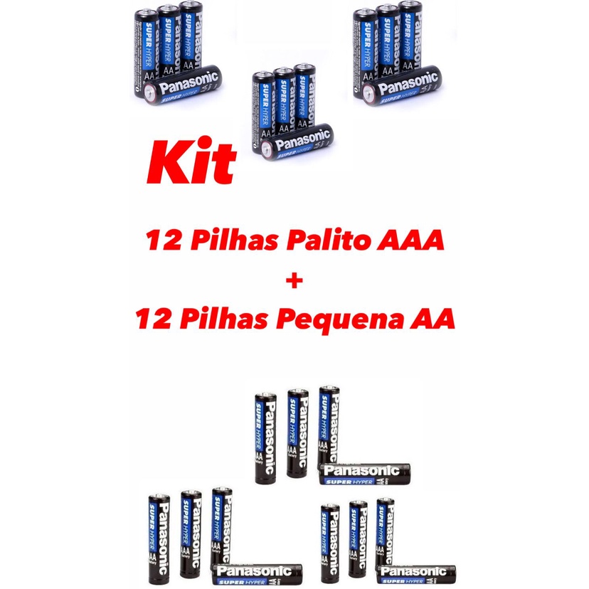 KIT 12 Pilhas Palito AAA + 12 Pilhas Pequena AA (Panasonic)
