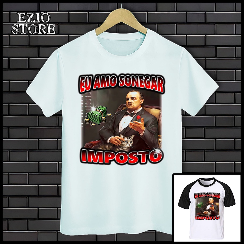 Camiseta Poderoso Chefão "Eu Amo Sonegar Imposto" Unissex Meme, Camisa Blusa Branca e Preto