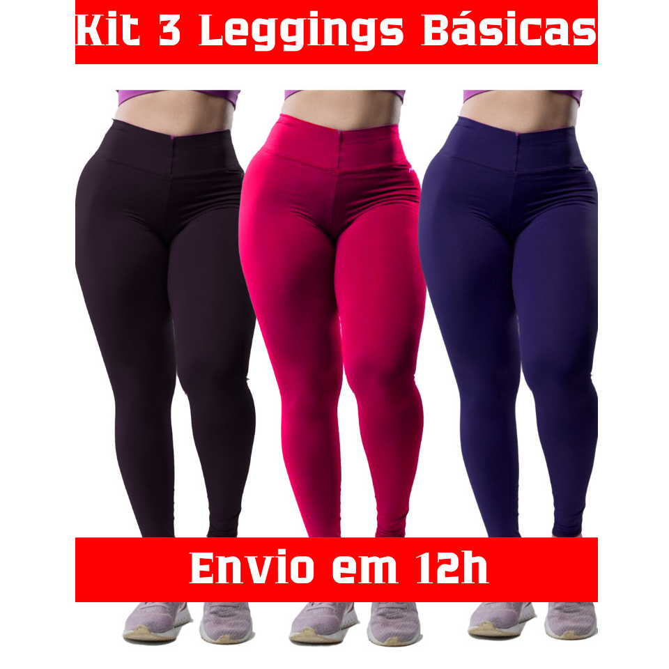 Kit 3 Calça Legging Feminina Suplex Academia Leg Grossa com Compressão Blackout zero Transparência Cós Largo Promoção