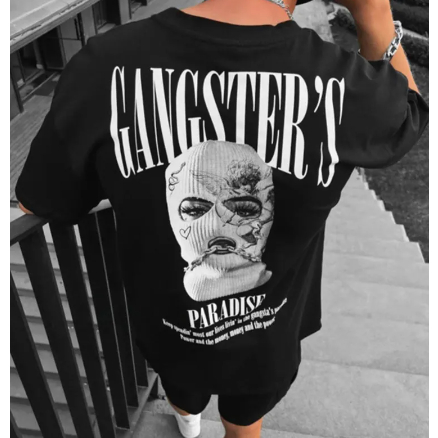 Camiseta Masculina de Algodão hip-hop, Tops Vintage Solto, Estampa Gangster Novo!