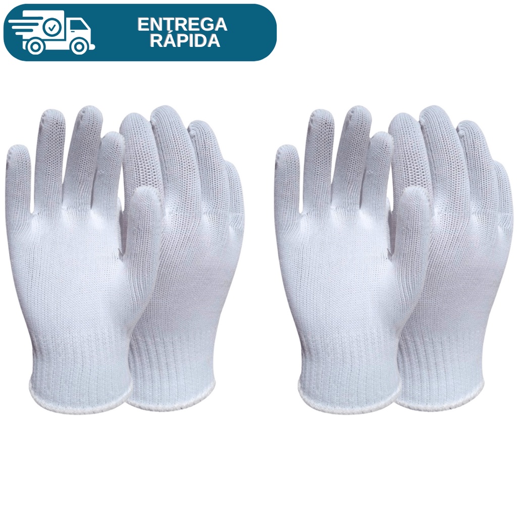 Kit 2 Prs Luva Tricotada Malha Helanca Poliamida Branca De Proteção Lisa Para Pedreiro Manutenção Epi