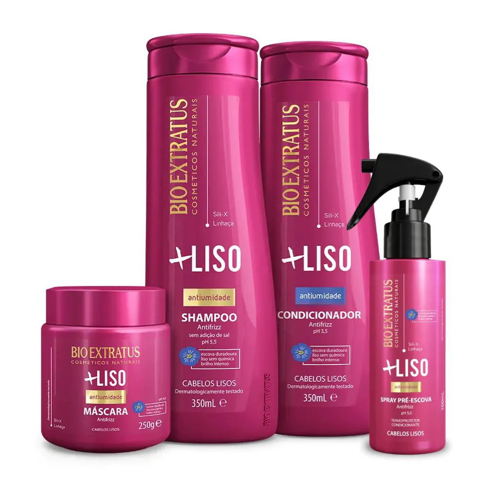 Kit +Liso Shampoo, Condicionador 350mL Máscara 250g e Finalizador Spray 100mL Bio Extratus