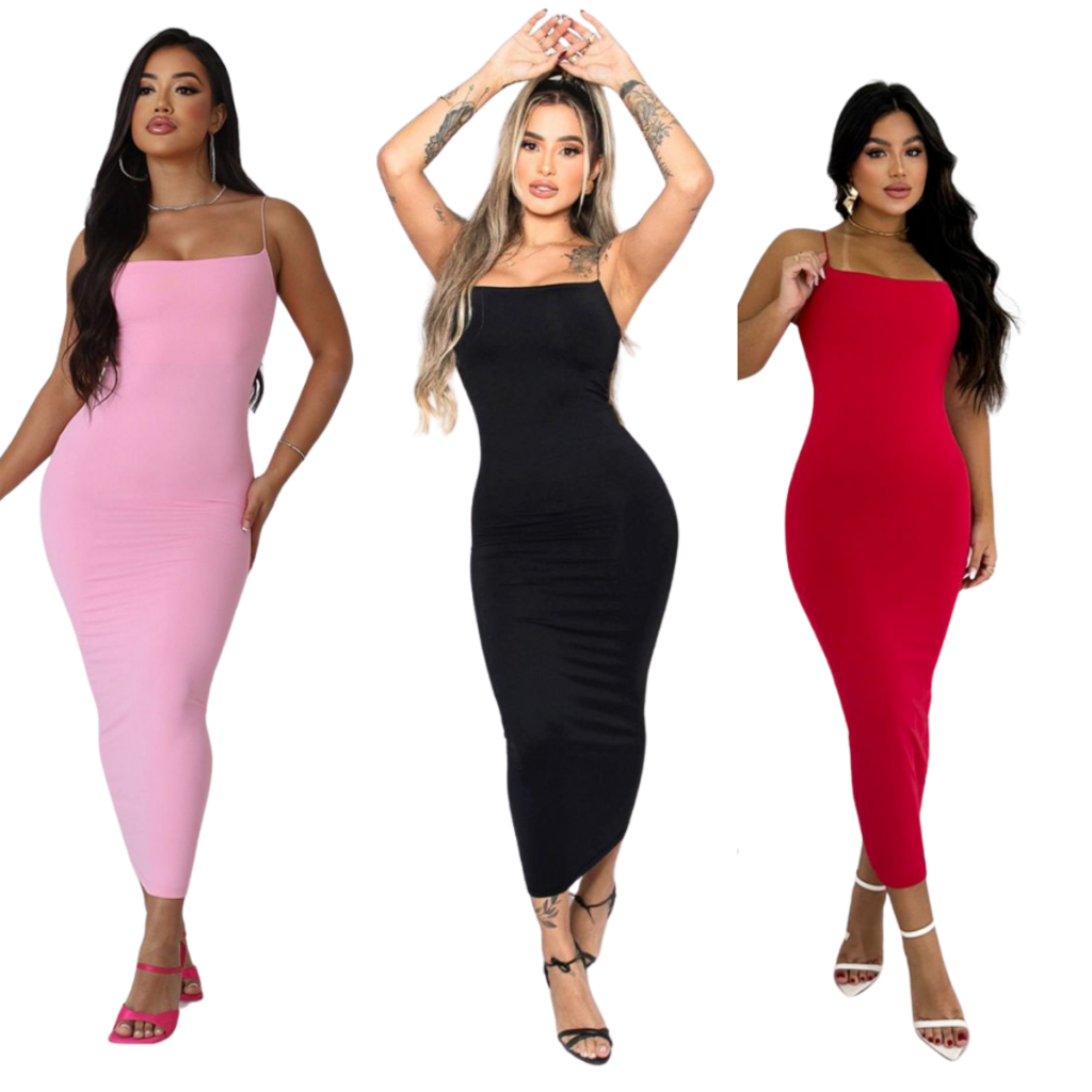 Vestido Longo Feminino Tubinho Com Alça Max Midi Casual