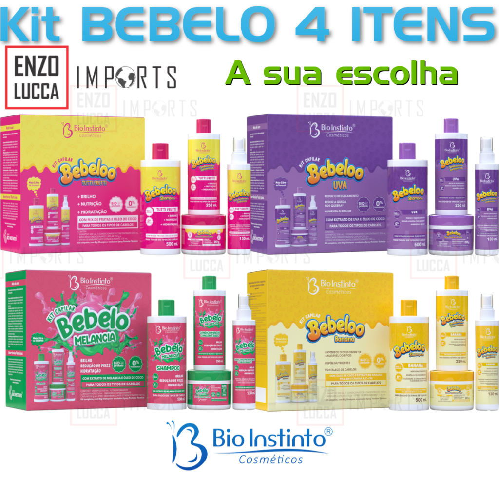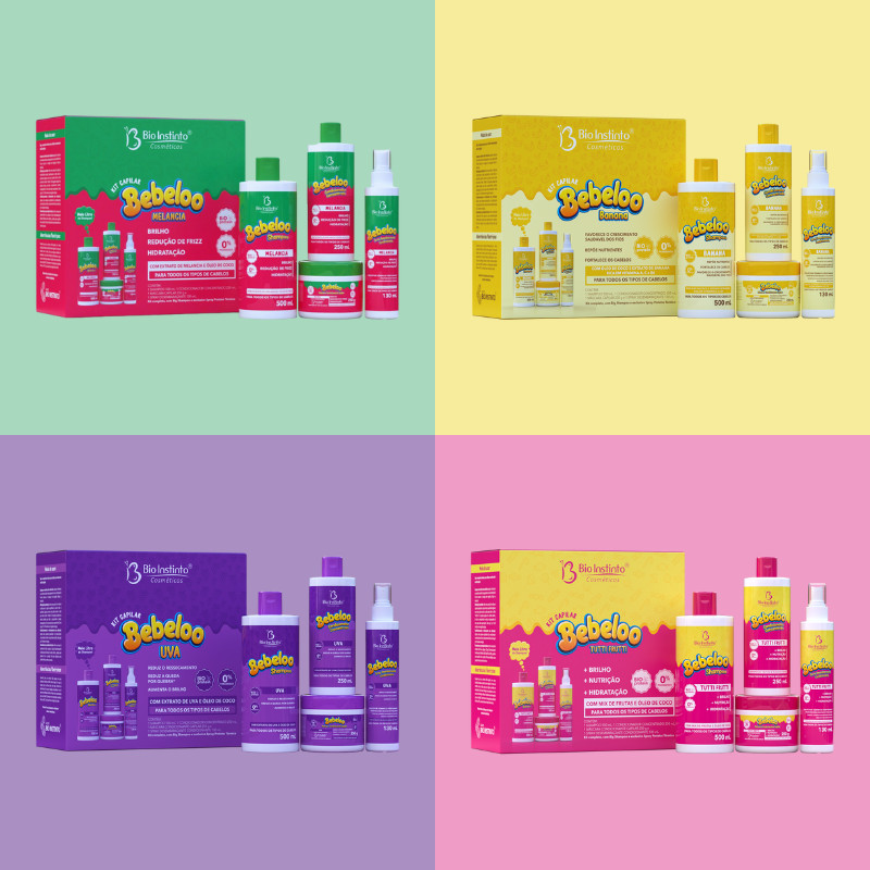 04 kit Capilar Bebelo Tutti Banana Uva Melância Bio Instinto Hidratação Queda Salão Beleza 16 itens