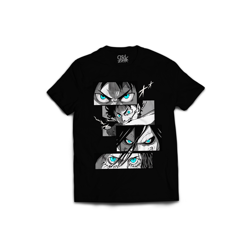 Camiseta T-shirt, Adulto e Infantil, SHINGEKI NO KYOJIN EREN TITÃ, Geek Anime Manga Otaku