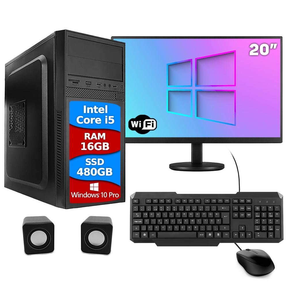 Computador Completo Amg Comercial Intel Core I5, 16GB RAM, SSD 480GB, Windows 10 Pro + Monitor 20 + Caixa De Som