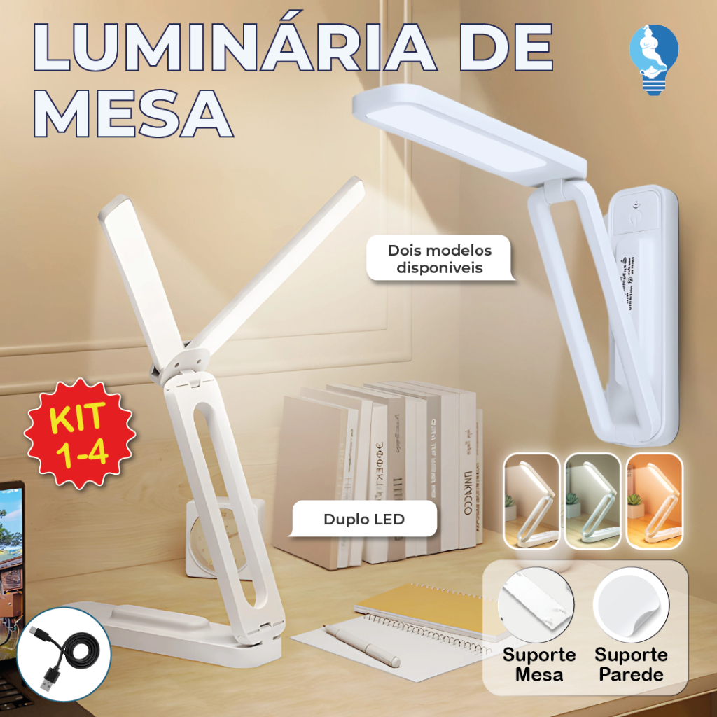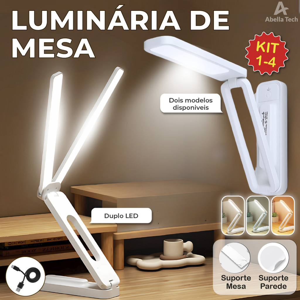 Kit 4 Luminária de Mesa Abajur Led Dobrável 3 Tons de luz suporte articulado USB Bivolt 2 Modelos