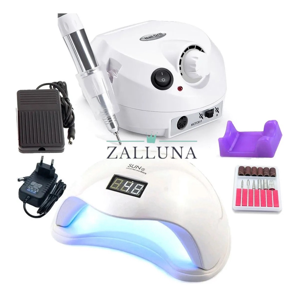 Kit Completo Cabine Sun 5 48W Lixadeira Elétrica Caneta Luminária de Mesa com Garra Pedicure e Manicure para Alongamento Extensão Unhas Porcelana Gel Acrigel