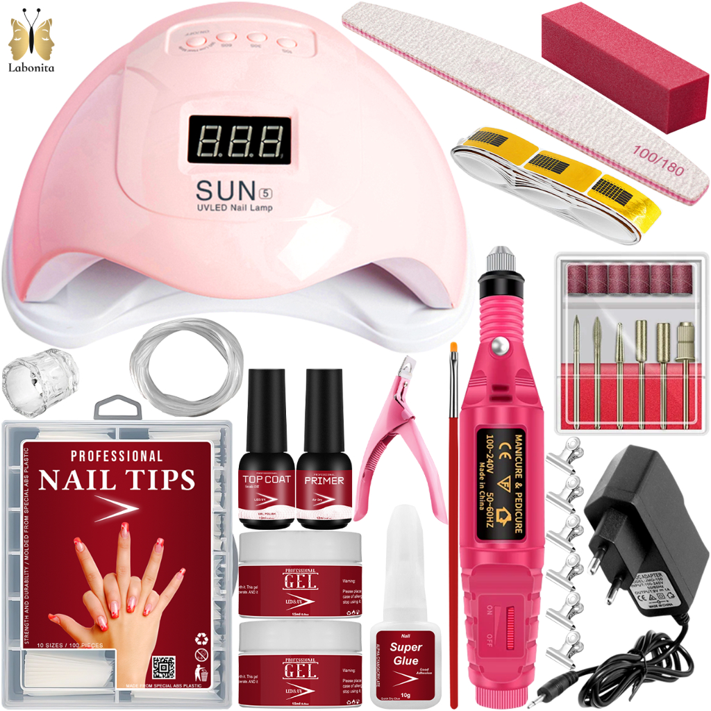 Kit Unha Gel Completo Cabine Sun 5 48W Digital Lixadeira Elétrica Caneta Pedicure e Manicure Alongamento De Unhas
