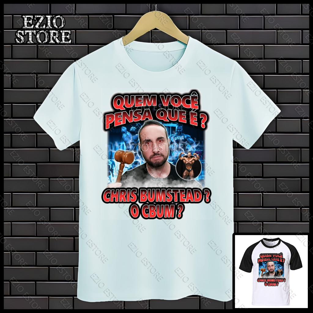 Camiseta Rodrigo Góes Meme "Quem você pensa que é? Chris Bumstead? O Cbum?" Unissex, Blusa Rodrigo Góes Camisa Treino, Meme Chris Bumstead