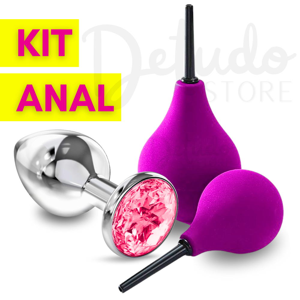 Kit Plug Anal Tamanho M Médio + Ducha Higiênica Anal 200ml + Gel Lubrificante Anal Sex Comfort