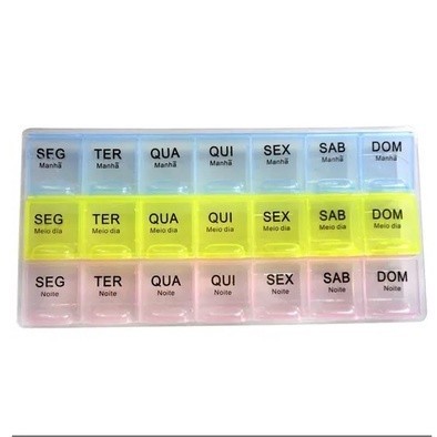 Porta Comprimidos Com 21 Divisórias Semanal Manhã Tarde e Noite