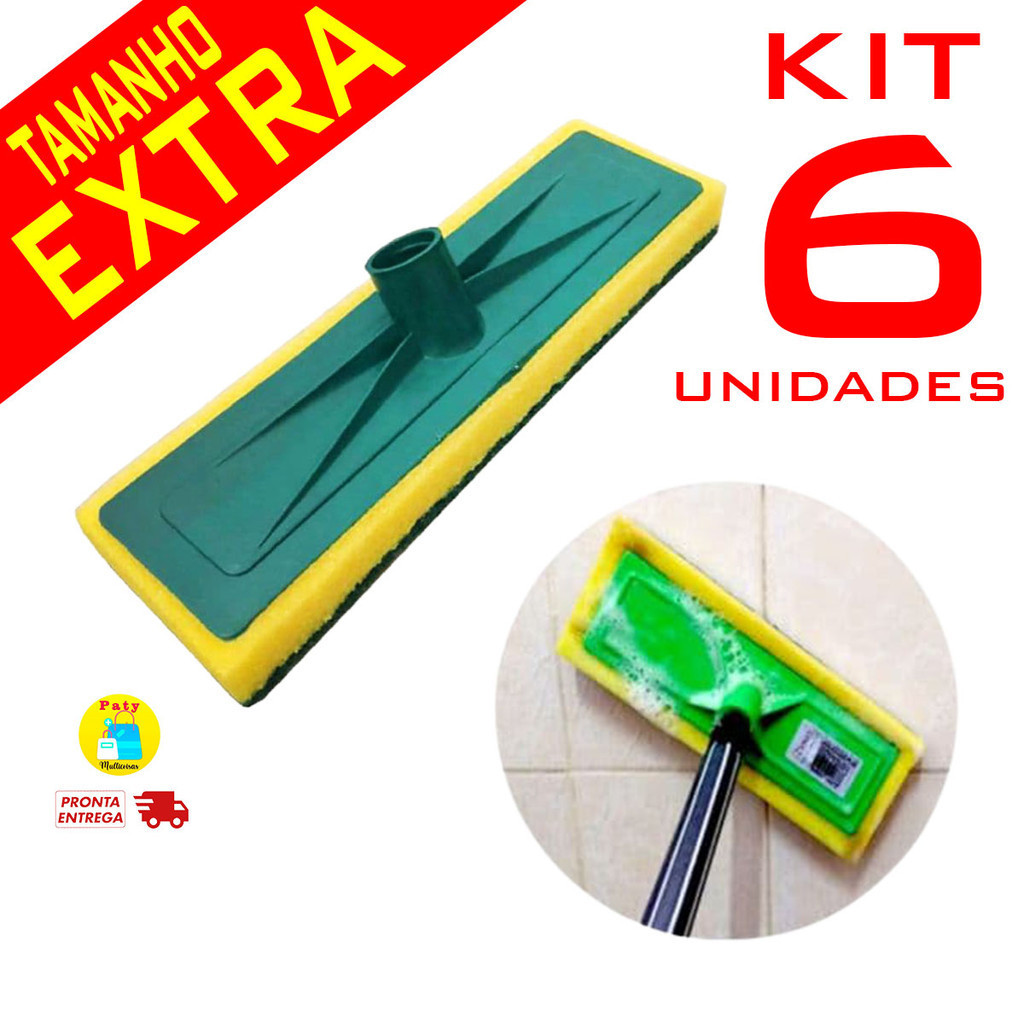 Kit 6 Lava piso azulejo chão vidro porcelanato passa cera esfregão limpeza pesada s/ cabo