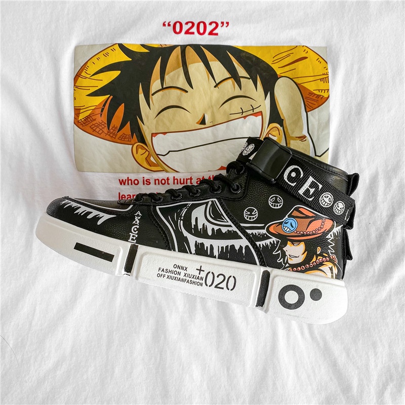 Tênis de anime de sucesso One Piece Luffy Zoro Ace Moda Trend Sapatos de cano alto