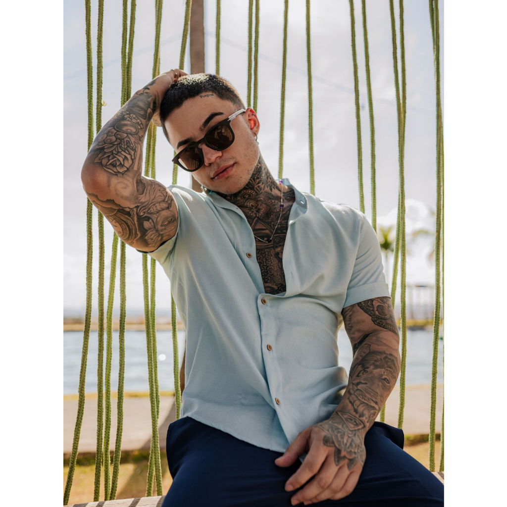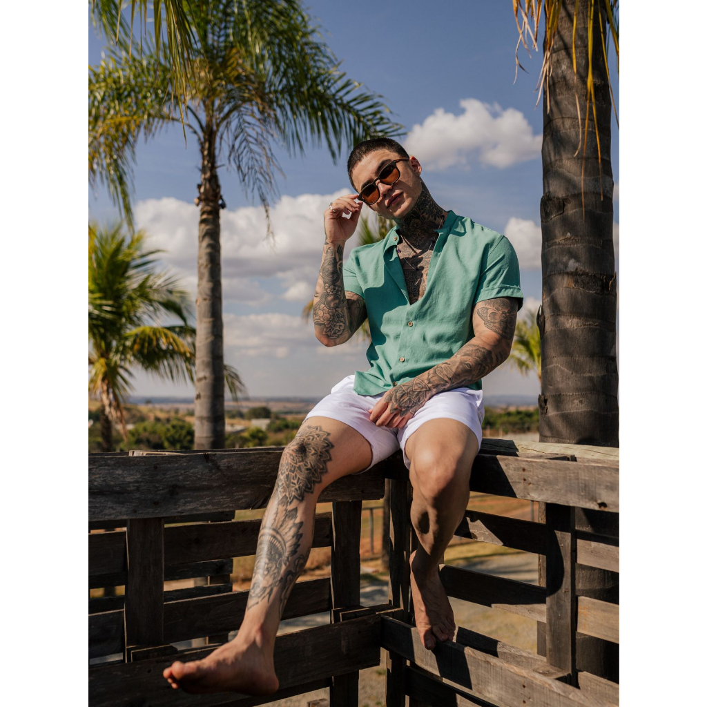 Camisa manga curta social masculina de linho com gola padre - camisa para verão - camisa fresca