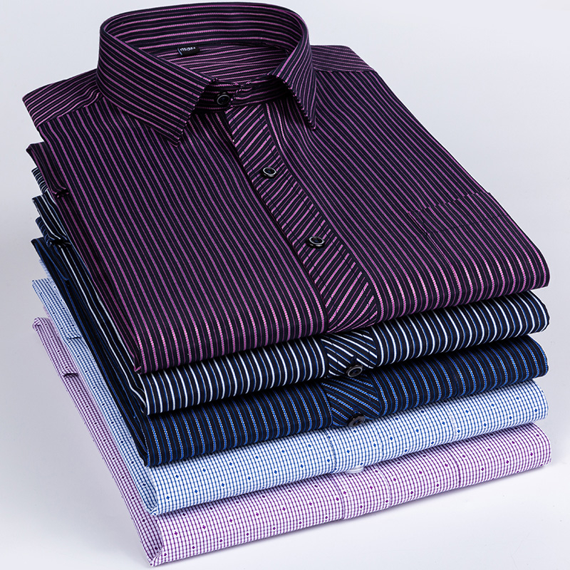 Casual Manga Longa Algodão Plus Size Tamanho 8XL Camisa Social Homem De Trabalho Com Listras Masculina Camisas