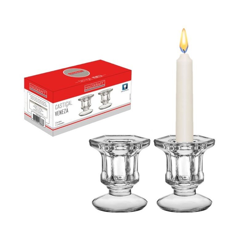Kit 2 Castiçais de Vidro Porta Velas Decoração Enfeite