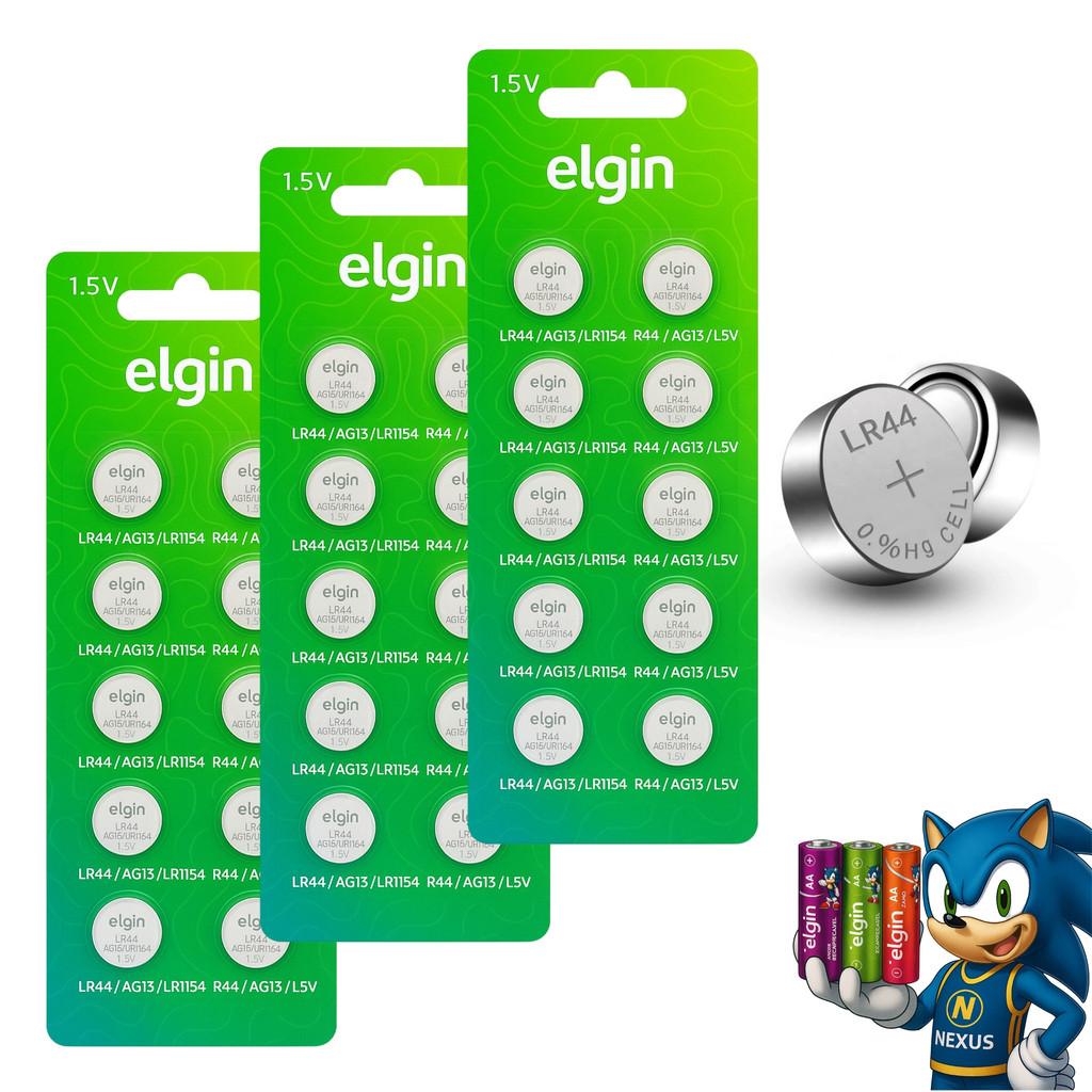 30 Baterias Pilhas Alcalina Lr44 1,5v Blister Cartela Elgin