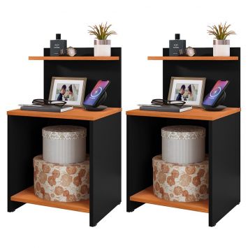 Conjunto 2 Mesinhas Lateral Cama Nicho Decoração Mesa Cabeceira Prateleira Suspensa Organizadora Quarto-Preto/Cinamomo- RPM Móveis