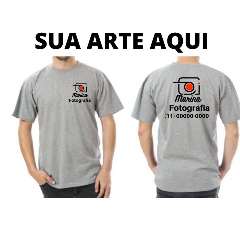 Camiseta toda cinza personalizada com sua logo, arte ou udeia - FRENTE E VERSO TAMANHO A4