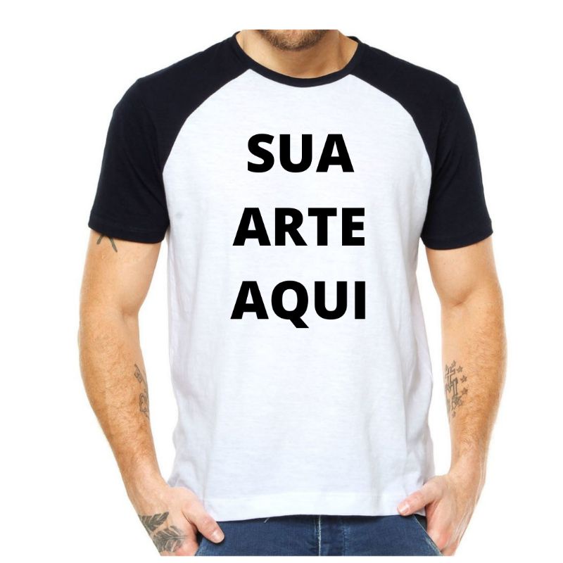 Camiseta Raglan Branco Personalizada com sua logo, arte ou ideia - FRENTE TAMANHO A4