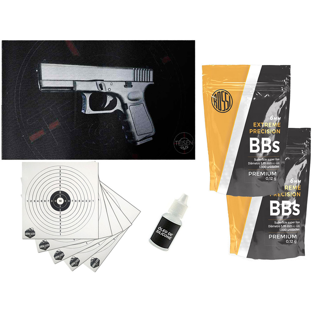 Combo Essencial Airsoft: 2000 Munições BBs 0.12g + Gunpad Antiderrapante + Óleo de Silicone + Alvos para Treino