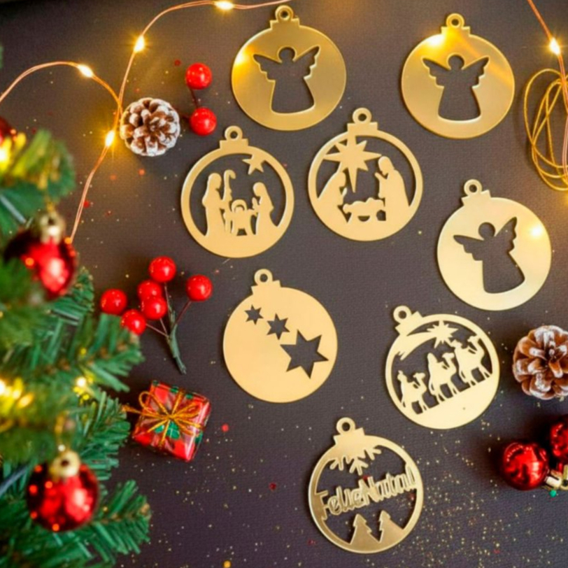 Kit 8 Decoração De Natal Bola Em Acrílico Espelhado Dourado Enfeite Para Árvore De Natal Espelho Presepio