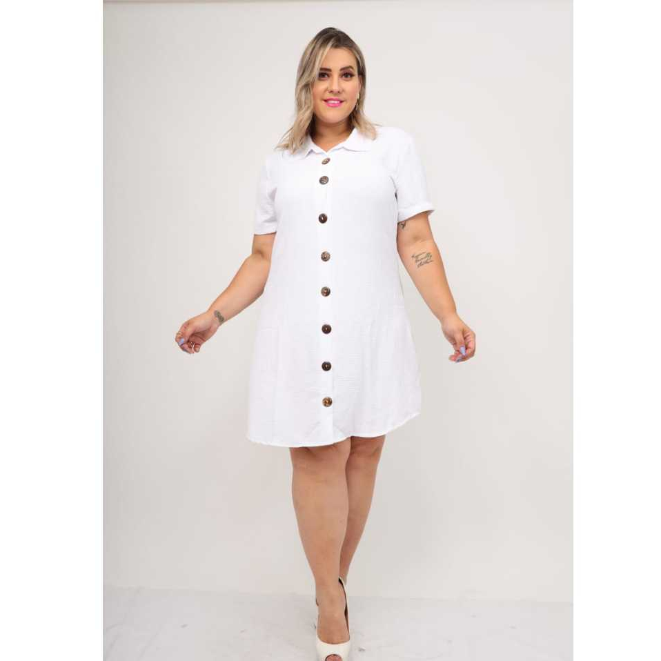 Vestido Chamise Plus Size Manga curta Com Boton de coco texido Duna