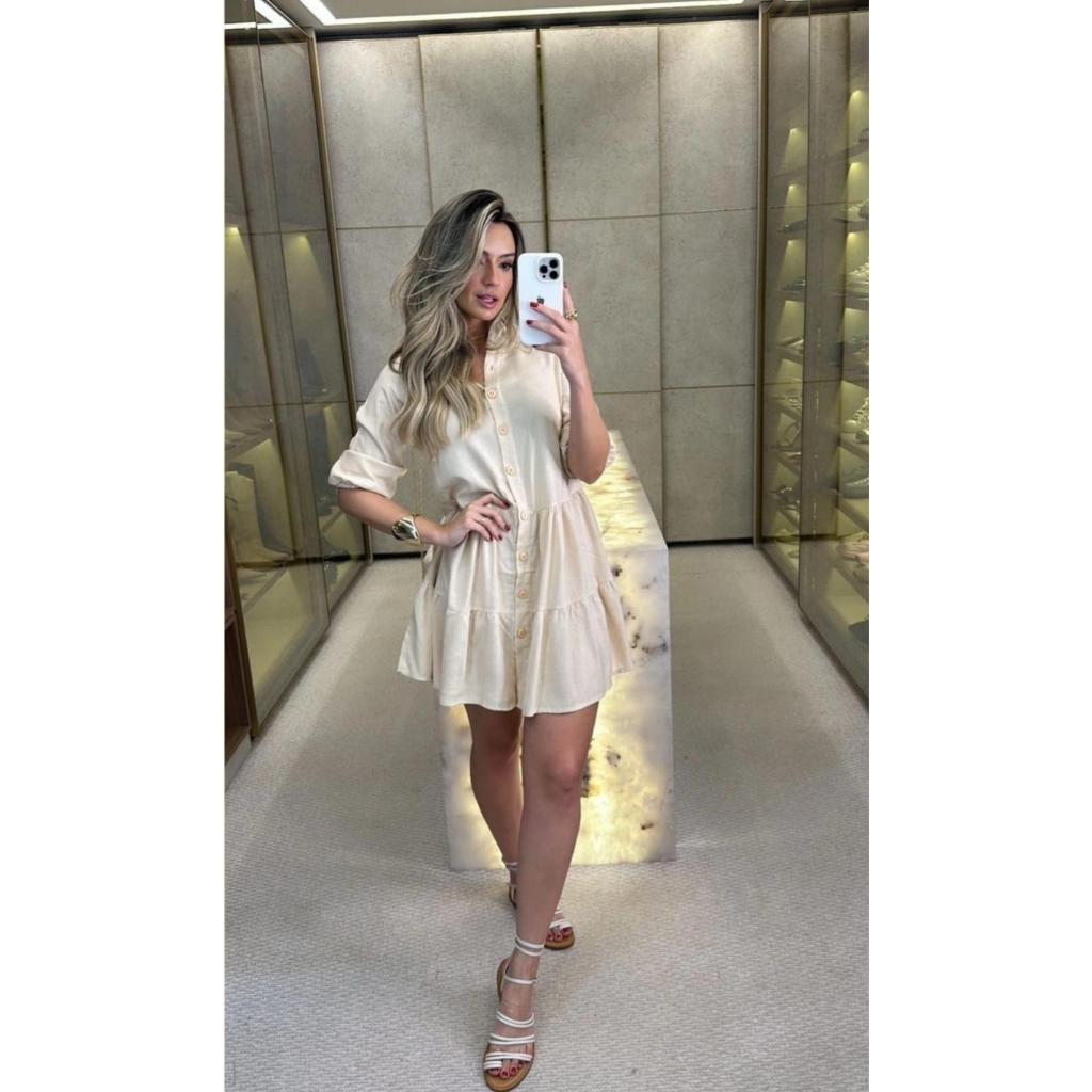 Chamise Vestido Curto De Linho com Manga longa e Botões frontais Bata Moda Feminina Casual Elegante