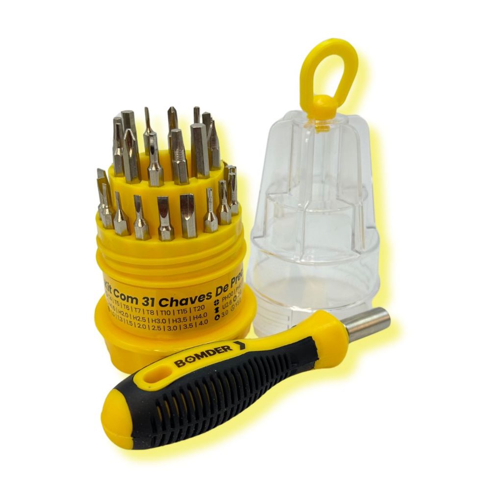 Kit Jogo 31 Peças Chaves de Precisão Diversas, Allen, Torx, Fenda, Phillips, Y, U