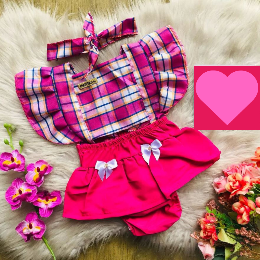 Jardineira Romper Body Bebe Menina Luxo Festa Vestidinho Mesversario Temático Festa Junina Julina Caipira