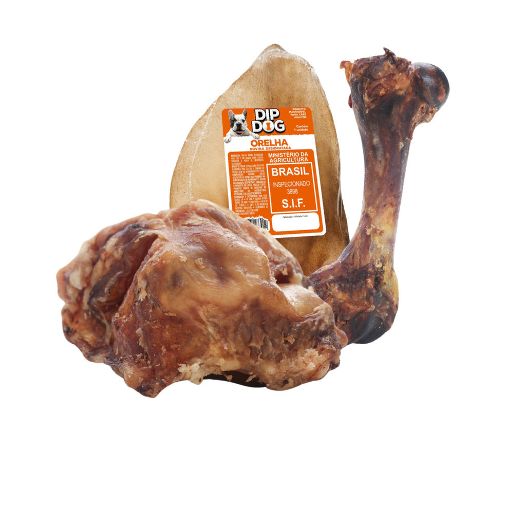 Kit Petisco para caes Osso mordedor Orelha Bovina femur suino desidratado 100% natural