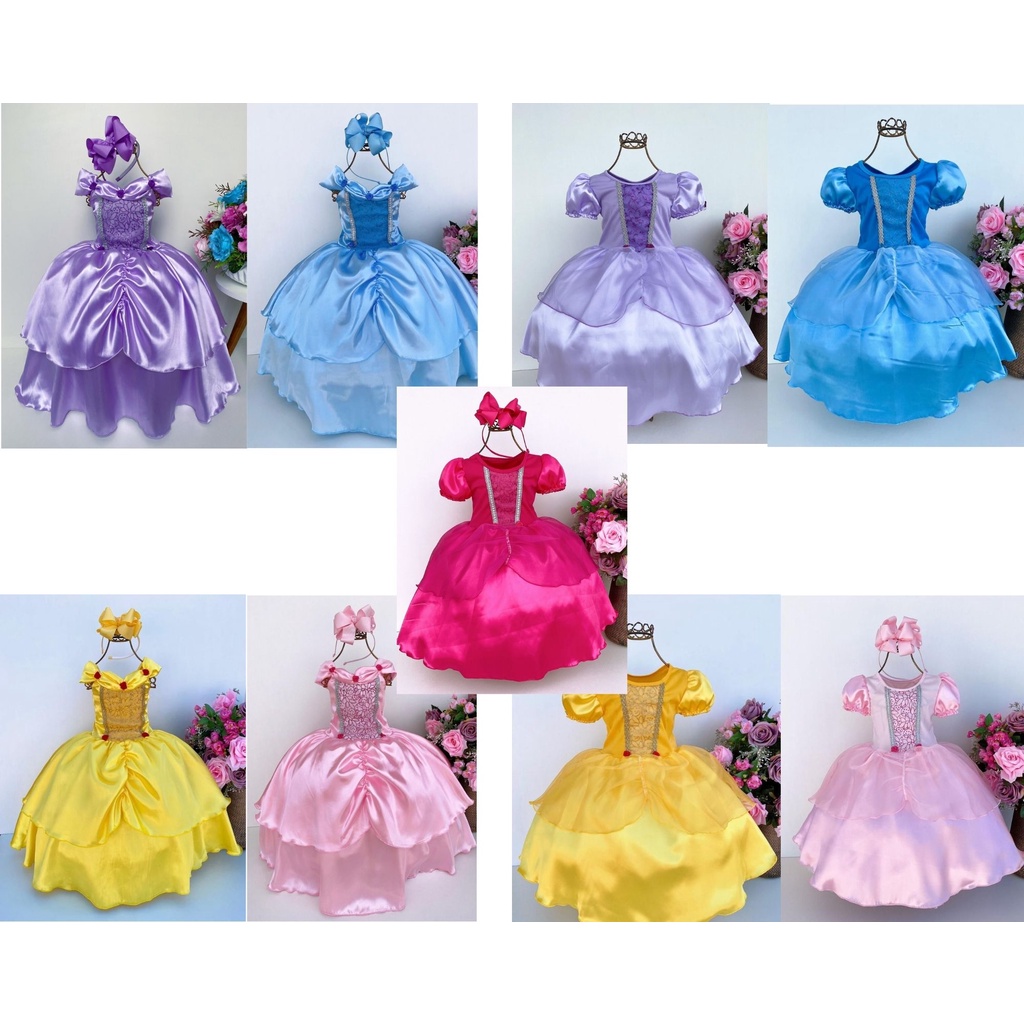 Vestido Fantasia princesas disney bela e a fera Cinderela branca de neve Rapunzel