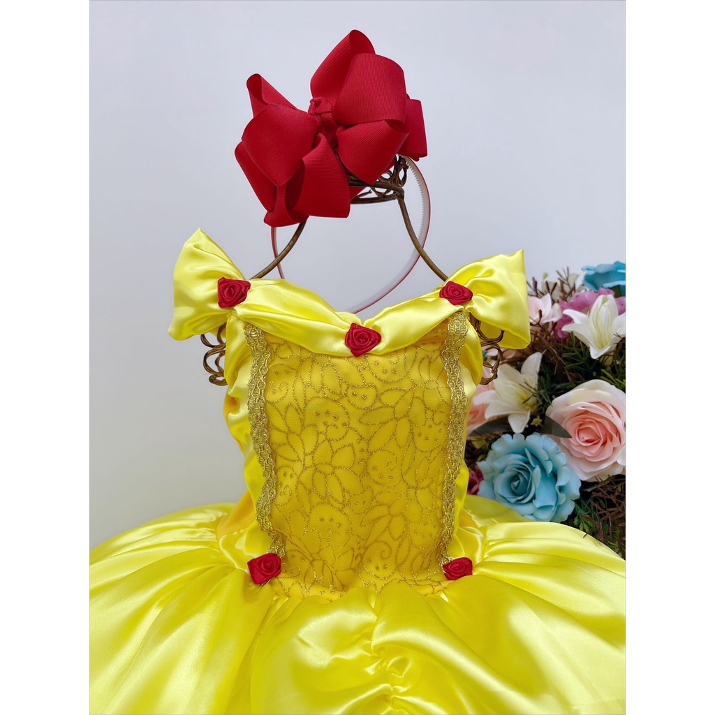 Vestido Fantasia Amarela A bela e fera Vestido Amarelo Branca de neve