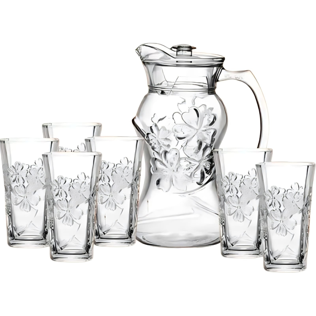 Jogo de Jarra de Vidro 1,2L com 6 Copos 350ml | Kit com 7 Peças | Vidro Transparente | Ideal para Sucos, Água