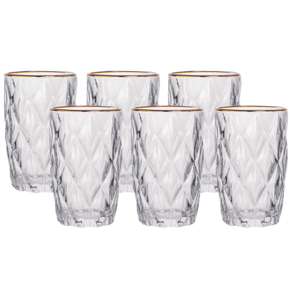 Copos De Vidro Agua Jogo Com 6 Unid De 350ml Grande Diamante