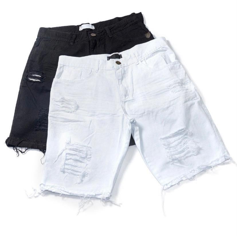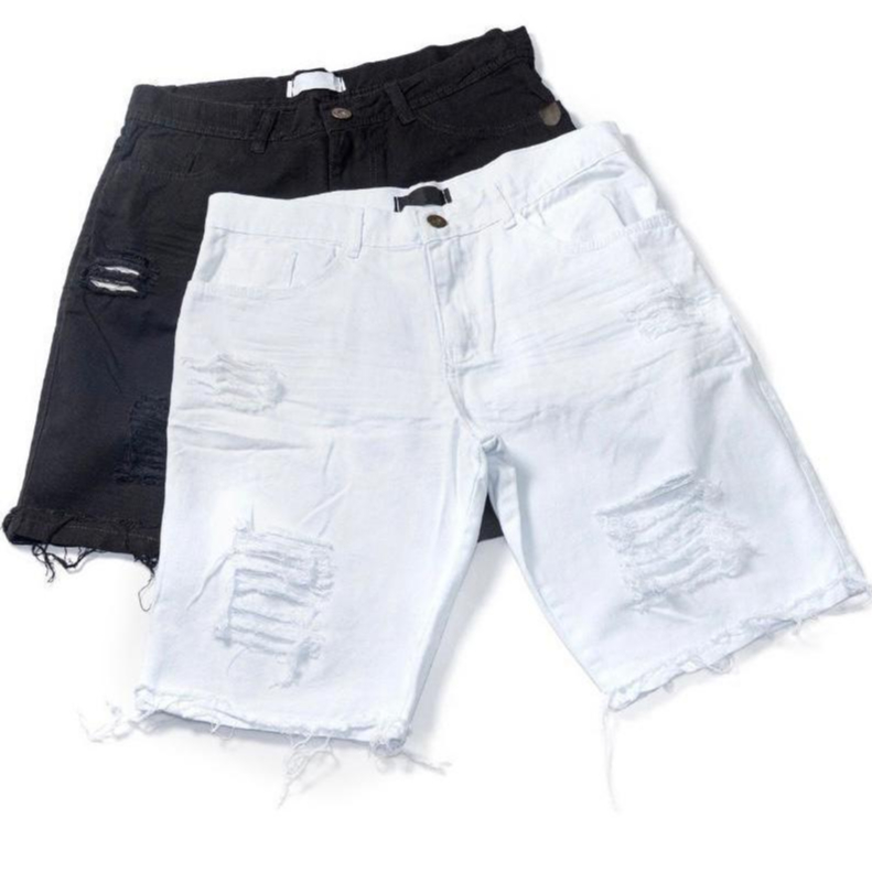 Kit 2 Bermuda Shorts Jeans - Slim Rasgada Masculino - Preto e Branco. Promoção