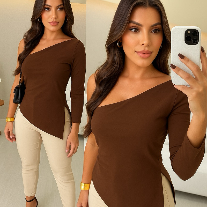 Blusa Feminina Elegante Mula Manca Assimétrica Casual Ombro Único Com Franzido